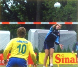 把球圍56∼60公分,重約1磅的圓形球,擲向與地面55度角的耐龍網。使得打擊網後,彈回3公尺的有效區外,不為對方守備球員所接獲時為得分。同方隊員相互傳球,不得超過3傳球,如此交互輪換攻守遊戲。重禮讓精神,又稱「君子球」。