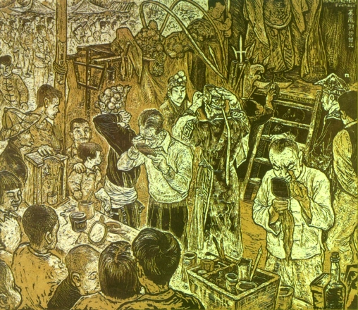Yuyu Yang Backstage Woodblock 1952 48×56cm Collection of Yuyu Yang Artistic and Educational Foundation |