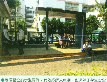 社區通學道完成後,除了景觀的改善之外,最大的改變是家長接送子女的等候動線拉長到步道兩側,有效疏解校門口的交通壓力。呂校長說,改變環境和動線的設計,比起口頭勸說效果好太多了。現在在校園警衛室銜接新的等候涼亭,在座椅和燈光的規劃下,學生和家長自然會到等候區,就算學生下課晚一點點,也讓人更放心。