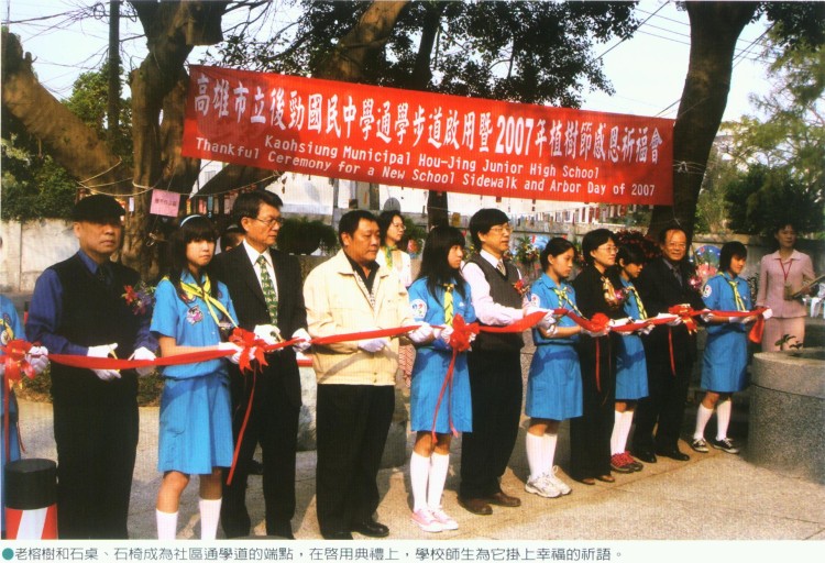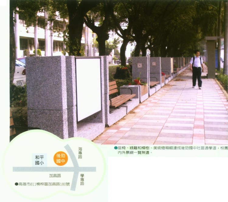 莊啟源校長說,後勁國中是高雄市較偏遠的學校,但也相對保留了鄉村部落的純樸氣息,捷運通車後將帶來重大的改變,尤其是以複層植栽綠籬方式營造、具有田園風味的後勁國中社區通學道完成後,開放的視覺空間讓校園內花團錦簇的庭園造景從通學道上便能一覽無遺,也讓出入捷運的人們在緊湊的生活腳步中,享受賞心悅目的生活景象。
