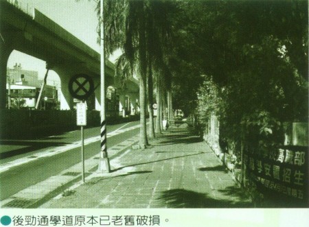 後勁國中社區通學道是沿著加昌路校門口西側一帶進行改善,東側的部分則留待捷運於2007年底完工後再依據既有改善的成果加以延伸。