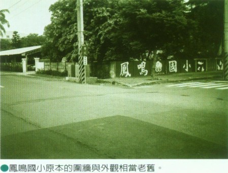和許多學校一樣,鳳鳴國小從民國四十年設校以來,已是有五十年歷史的老學校,校舍還保有傳統小學的特殊風味,並無陳舊感。但反觀校園圍牆就顯得老舊破損,去年鳳鳴國小也藉由教育部的永續校園計畫,先打開西側龍興路L型的圍牆,同時也爭取到市府2006年社區通學道計畫,以更豐富的意象和表現手法營造龍興路到側門百餘公尺的通學道,處處巧思的造景,完整展現「 人文.尊重.活力.超越」的學習宗旨。