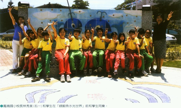 鳳鳴國小是高雄市最南邊的學校,圍牆外圍不遠處就是海洋,而代表學校的動物圖騰就是「綠鯨魚」 ,鯨魚代表的是海洋環境,綠則是這個濱海校園所展現出來的勃勃生機。鳳鳴國小校長林秀美像一個稱職的導覽員,悉心解說學校的一景一物和多年來經營學校的殊榮,因為這些傲人的成果就化為點點滴滴的元素,融入鳳鳴國小社區通學道的規劃當中。