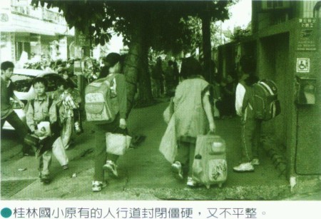 桂林國小對面即是綠蔭濃密、且擁有獨一無二觀機景觀平台的桂林公園,相對之下,學校的通學步道卻是老舊崎嶇,且均為硬鋪面,不論在水土涵養、景觀與生活品質上都大打折扣。